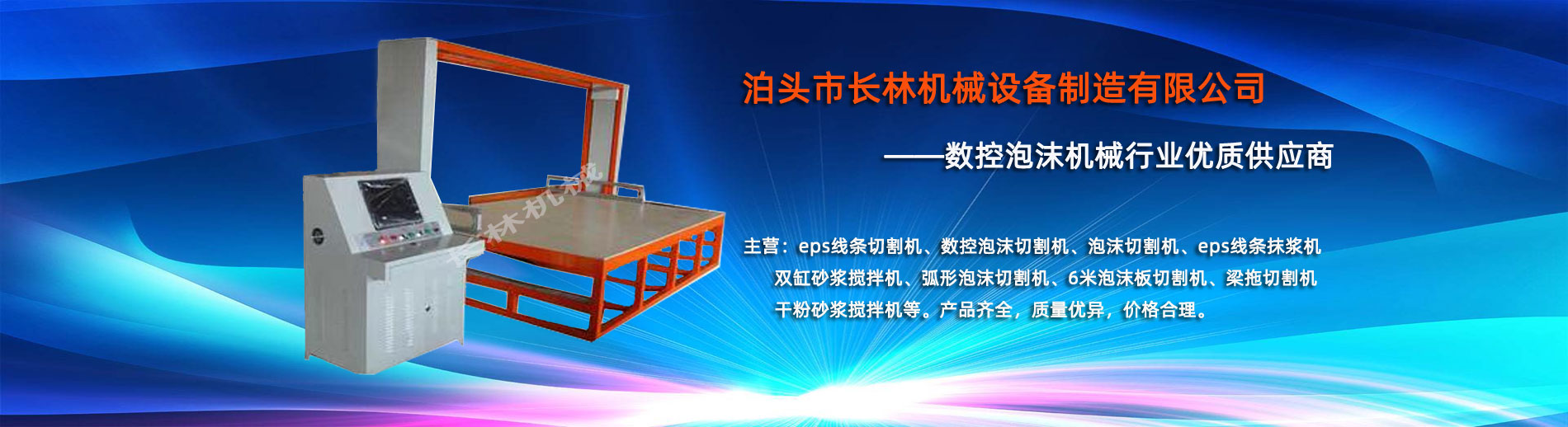 泊頭市長(zhǎng)林機(jī)械設(shè)備制造有限公司座落于河北省泊頭市開發(fā)(fā)區(qū)(qū),地處北京、天津、濟(jì)南、石家莊中心位置。京滬高速、京滬鐵路、106國道、104國道穿行于本市,交通便利。 本公司是集多功能數(shù)控泡沫切割機(jī)的自主研發(fā)(fā)、生產(chǎn)、銷售和服務(wù)于一體的企業(yè)(yè),eps線條設(shè)備,數(shù)控泡沫切割機(jī),發(fā)(fā)泡陶瓷切割機(jī),eps線條切割機(jī)銷往全國各地,并開辟了國際合作的廣闊渠道。創(chuàng)(chuàng)新不斷的長(zhǎng)林?jǐn)?shù)控機(jī)械有限公司經(jīng)過幾年的不斷研究,完善了建筑裝飾構(gòu)件的配套設(shè)備和自動(dòng)化設(shè)備,由過去手工生產(chǎn)到半自動(dòng)生產(chǎn)發(fā)(fā)展到現(xiàn)(xiàn)在的CNC控制的全自動(dòng)零誤差數(shù)控泡沫切割機(jī)床。不但讓客戶在交貨期上面爭(zhēng)取了時(shí)間而且···